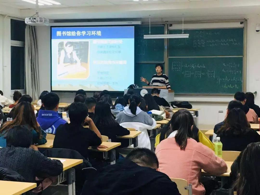 图书馆的历史和分布,并且说明了图书馆的功能,大学生可以利用图书馆丰富自己的知识,排疑解难,巩固加深课堂所学知识,还可以在图书馆通过阅读图书、期刊、报纸等文献不断地接受新思想、新知识,提高自身的信息素养。接着,三位老师又向同学们介绍了图书馆的具体布局,包括每一层的书籍类型和每层开放关闭时间,方便同学们规划学习内容和时间。随后,三位老师在图书馆网络平台和场馆之内的使用方法也做了讲解。最后,同学们欣赏了几张学生在图书馆内认真学习的图片,与三位老师之前展示的“语言静静流淌的地方”幻灯片相照应,凸显出图书馆的重要功能之一,图书馆是学习的好地方。