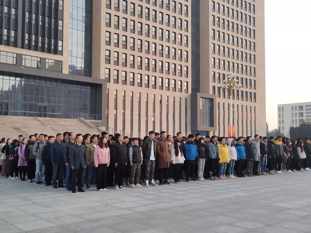 全体师生在生科楼门前集合,参加本次升旗仪式。