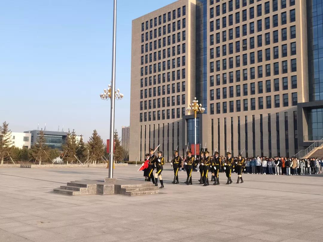 副院长杨忠仁以及全体辅导员、班主任出席本次升旗。院团委郝凤英老师主持本次升旗仪式。