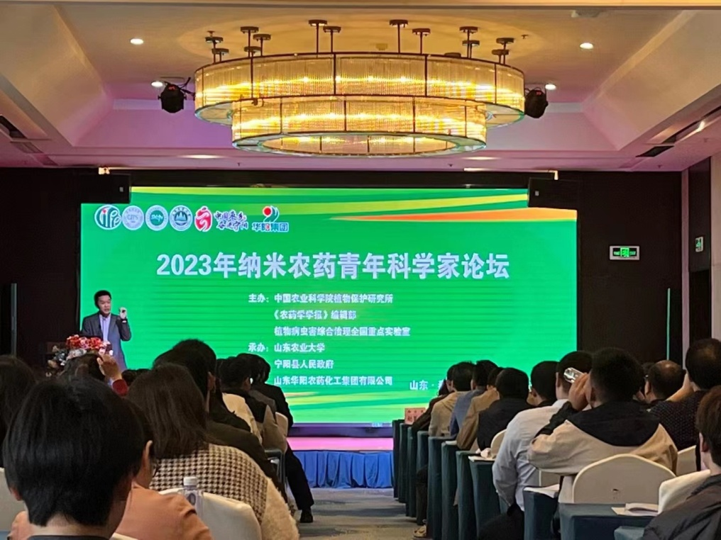植物保护学科王振、谭瑶、张文兵、杨佳乐四位专任教师前往山东省泰安市参加了由中国农科院植物保护研究所、《农药学学报》、植物病虫害综合治理全国重点实验室主办,山东农业大学植物保护学院、宁阳县人民政府承办的,山东华阳农药化工集团有限公司协办的“2023年纳米农药青年科学家”论坛。