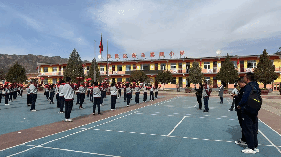 师生一行走进校园、深入学校劳动基地参加校园活动,还观看了该校师生共同展示的手绢舞。