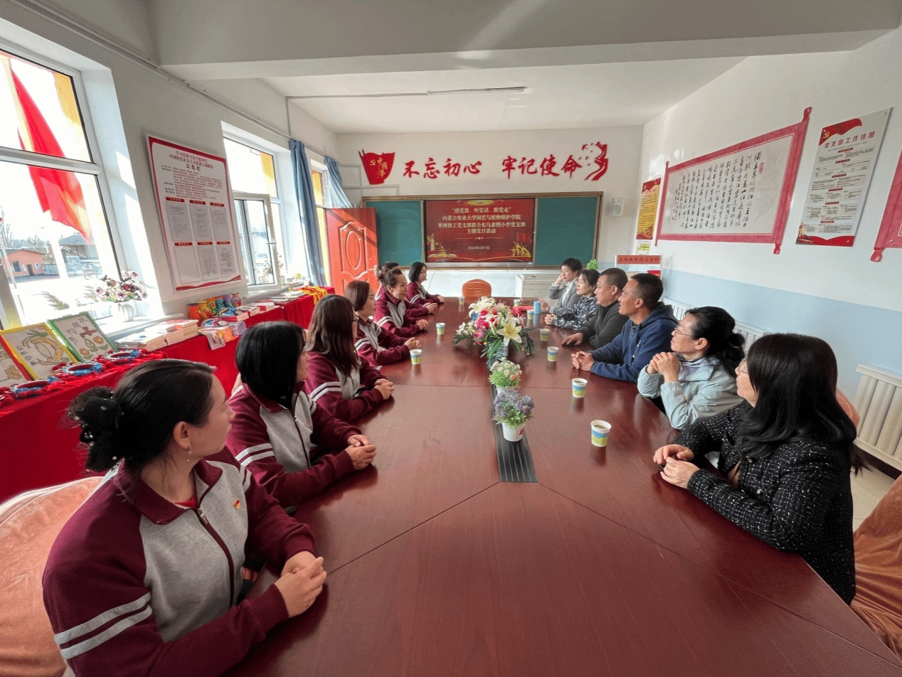 党委书记靳国斌等一行6人就“党支部共建促进耕读教育”、“如何构建高校与基础教育共同育人模式”等问题与东乌素图小学学校领导班子、党员教师进行了深入的座谈交流。希望通过活动的开展,助力高校与基础教育的牵手合作,促进劳动实践教育升级增效,共同助力学生成长。