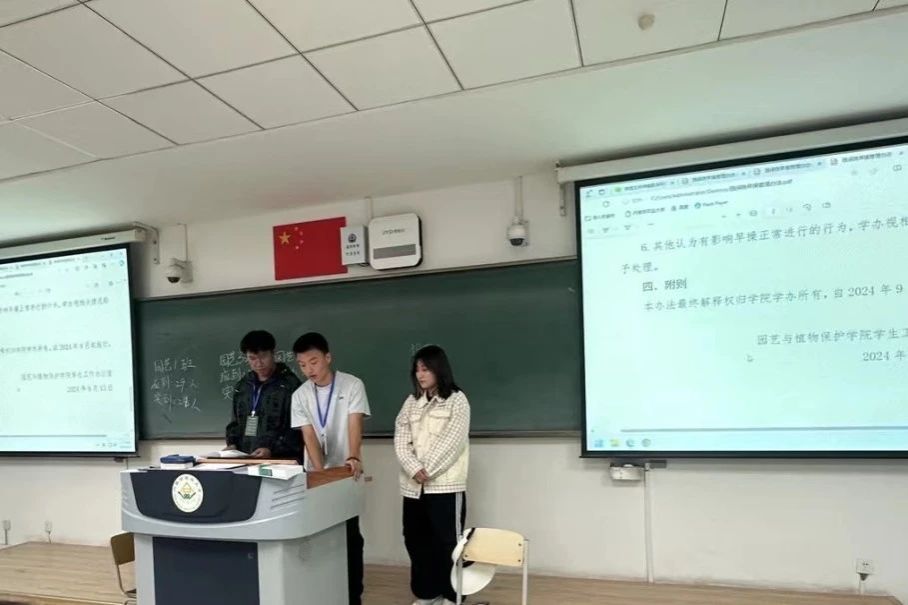 在南教426、524教室开展2024级新生入学教育活动。辅导员尚飞老师带领学风建设中心、舍风建设中心、体育健康中心成员对学院相关制度和管理规定进行讲解,全体2024级大一新生出席会议。