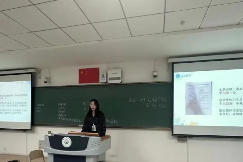 其次,舍风建设中心工作人员结合宿舍检查中常见的问题,如宿舍卫生、宿舍违纪、宿舍安全等方面,对星级宿舍的创建意义和评选规则进行了详细讲解。