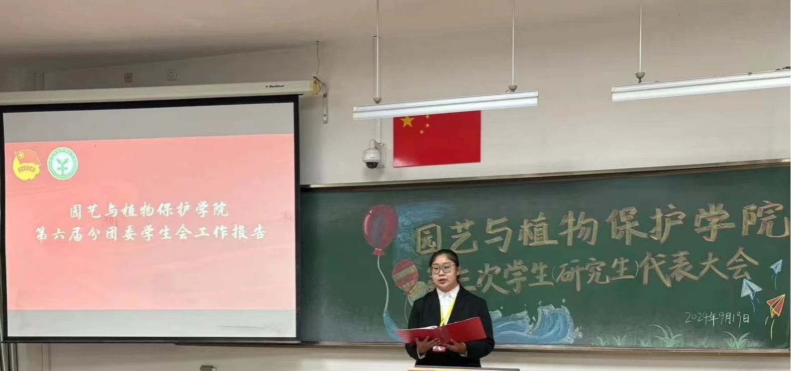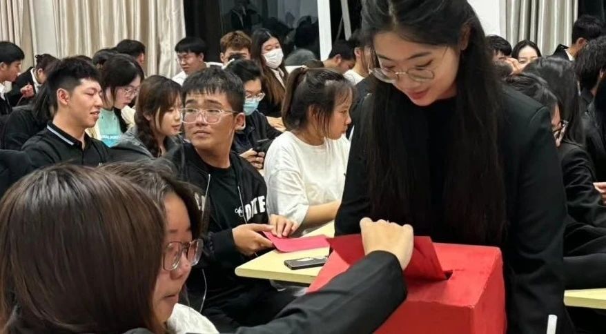 大会伊始,全体起立,奏唱国歌,激动昂扬的旋律在教室里回荡,激发着每一位代表心中的爱国情怀和责任使命感。随后,由第六届分团委学生会主席团成员王钰涵代表主席团围绕2024学年工作进行了总结,详细汇报了一年来,学生会在服务学生、丰富校园文化活动、学风养成建设等方面,取得的优异成绩,同时也对新一届学生会成员提出殷切希望。
