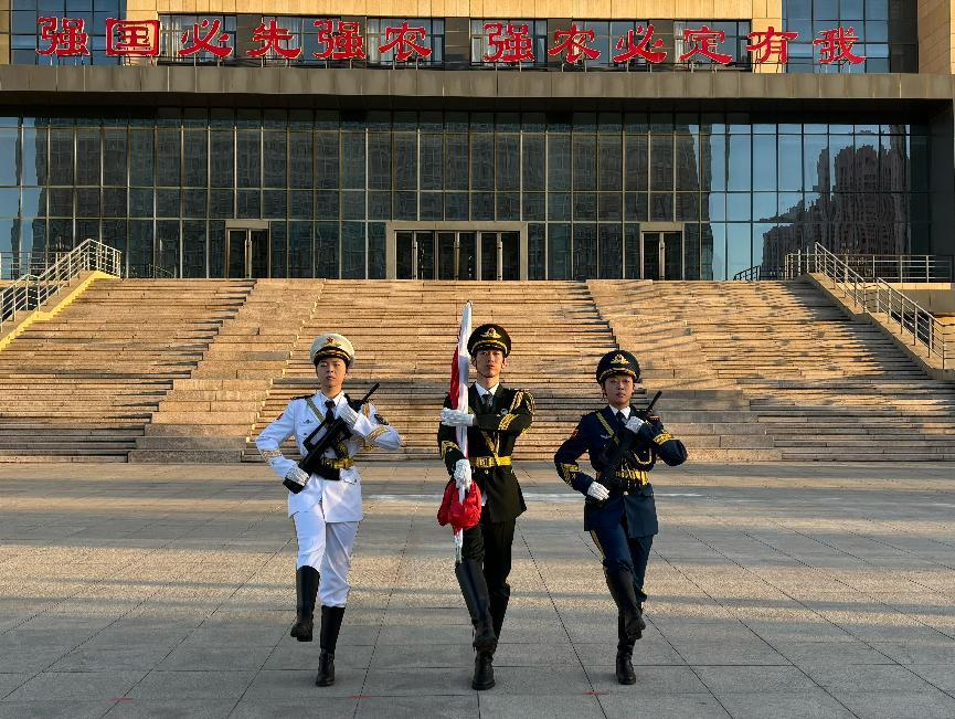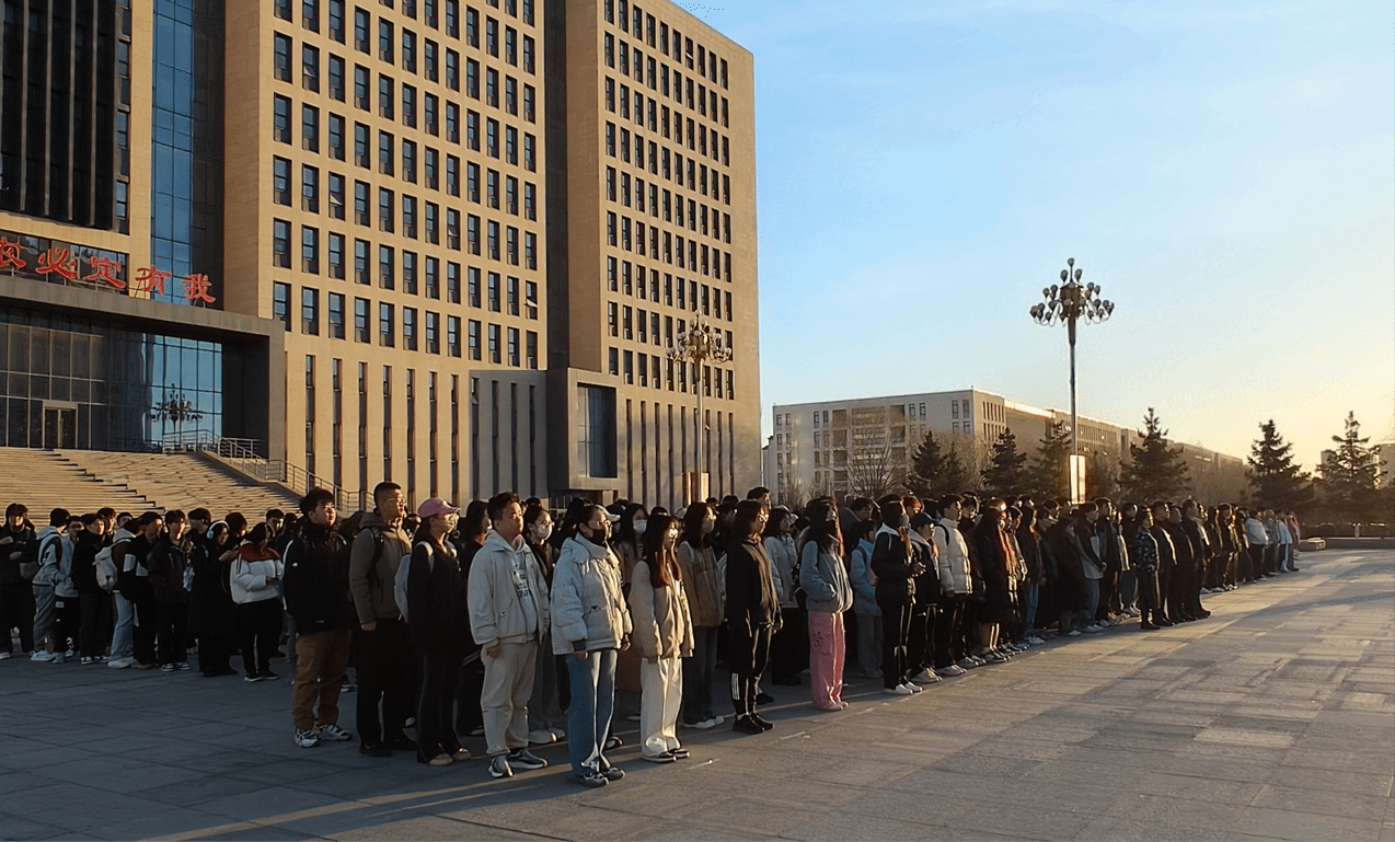 党委书记靳国斌、院长周洪友、党委副书记李艳、副院长刘杰才、副院长杨忠仁出席此次活动,22级、23级、24级学生参加,本次升旗仪式由申玉权同学主持。
