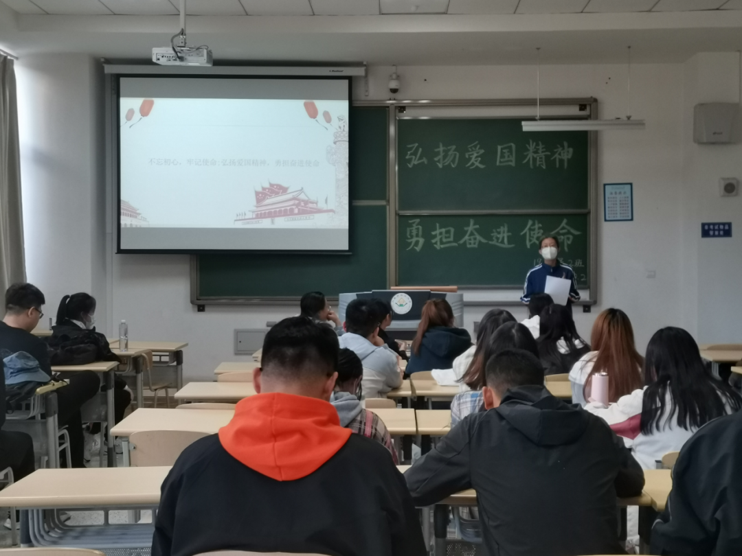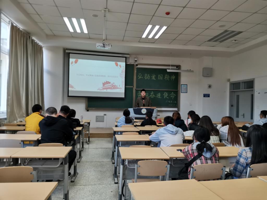 19级植物保护二班在团支书张新宇的带领下于南教110开展了以“弘扬爱国精神,勇担奋进使命”为主题的团日活动。