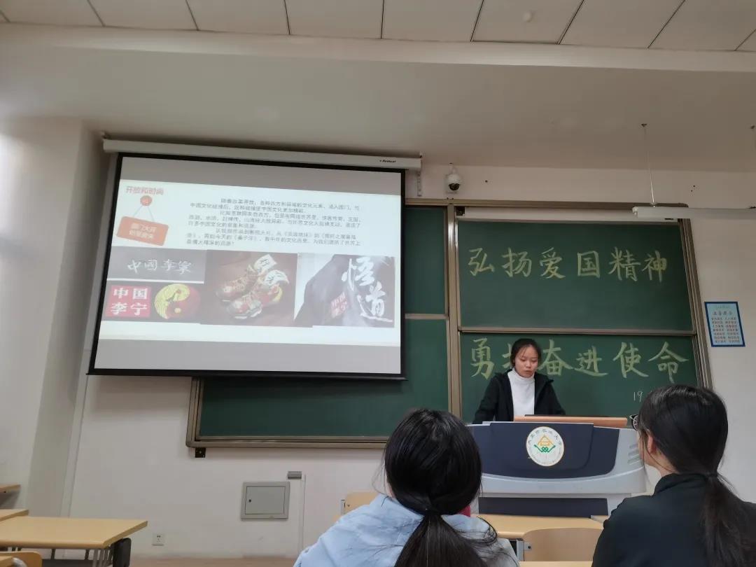 活动中,张新宇带领同学们通过短片重温了中华上下五千年的历史,在千年的历史长河中,四个源远流长的历史古国中唯有中国屹立于世界民族之林中历久弥新焕发着新的生机,同学们为自己身为华夏儿女感到无比的骄傲和自豪。此外,张新宇通过诙谐幽默的演讲向同学们讲解了课本中没有的历史故事,让大家知道了在中国工农红军长征路上还有很多像陈湘树这样的红军战士,红军精神值得在座的每一位大学生学习和传承。接着,班长赵德福希望同学们在新的一学期对学习、生活有清晰明了的规划。