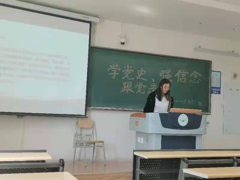 活动开始,于世杰为大家播放了“学习党史学习教育动员大会在京召开习近平发表重要讲话”和“习近平参加内蒙古代表团审议时的讲话”的视频。随后,同学们分享了个人观看后的感受和想法。接着,于世杰同学向大家讲述了有关“抗美援朝”和“红船精神”的故事。同学们也从中了解到党走过的百年征程,经历的百年跌宕,取得的百年辉煌和不变的百年初心。