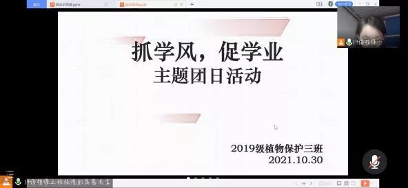 19级植物保护三班于10月30日晚采用线上会议开展本次团日活动,班级所有成员全部参加。