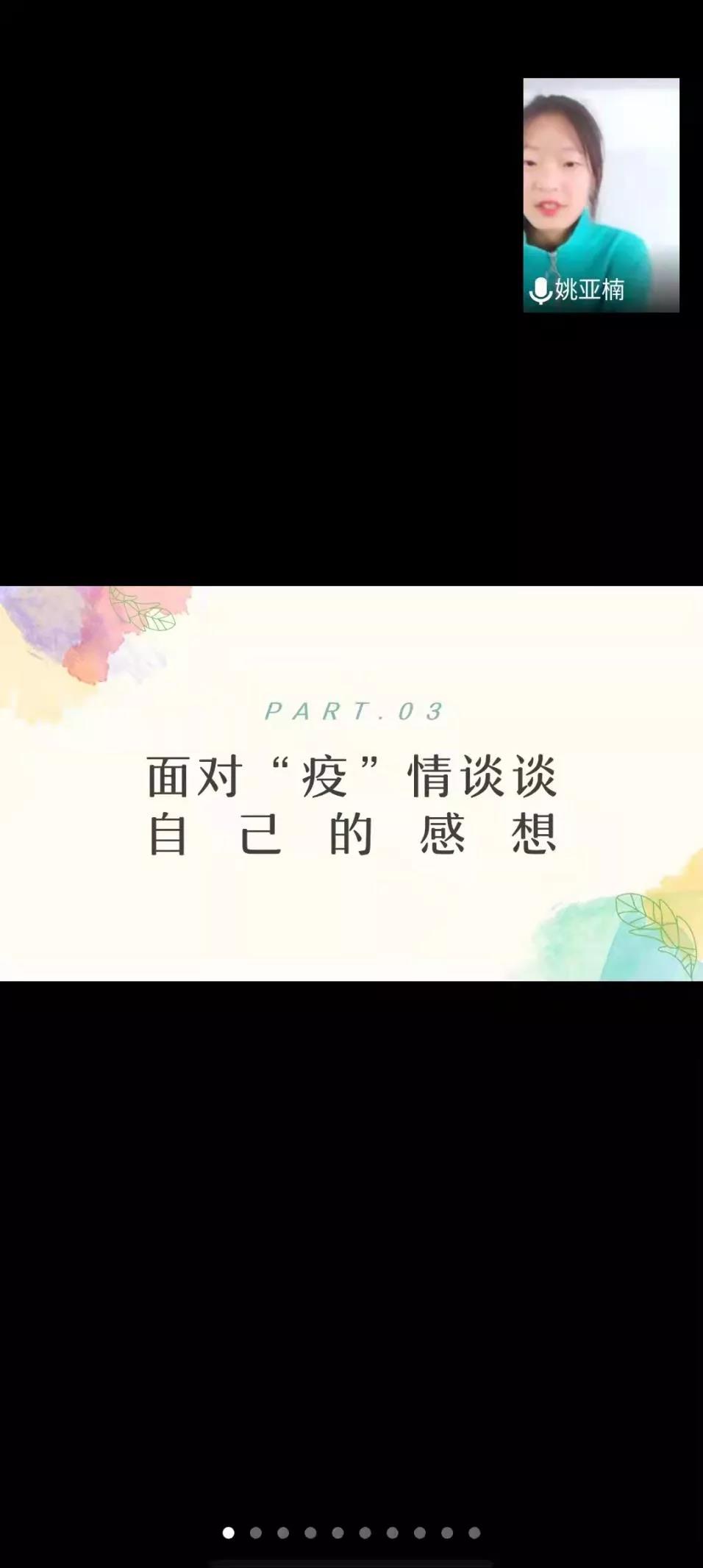 团支书温盛阳结合当前实际阐明了当下线上课遇到的问题,并提出了改进方案。接着,团支书讲解了“抓学风,促学业”的重要性和必要性,并围绕“认识学风,践行学风”“如何规范课堂纪律”“怎样明确奋斗目标”“发展德智体美劳”这四方面内容与大家进行学习和交流。随后,以“面对‘疫’情谈谈自己的感想”为话题,同学们相互交流。其中姚亚楠和郭梦同学均认为疫情期间要做好个人防护:出寝室时佩戴好口罩,勤洗手,定期消毒,勤通风等。即使是上线上课,也不可松懈,大学生应以学业为重。