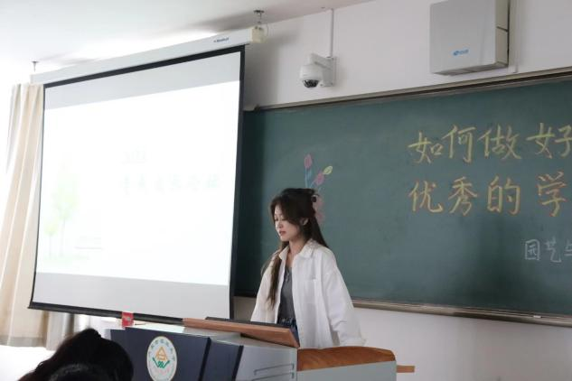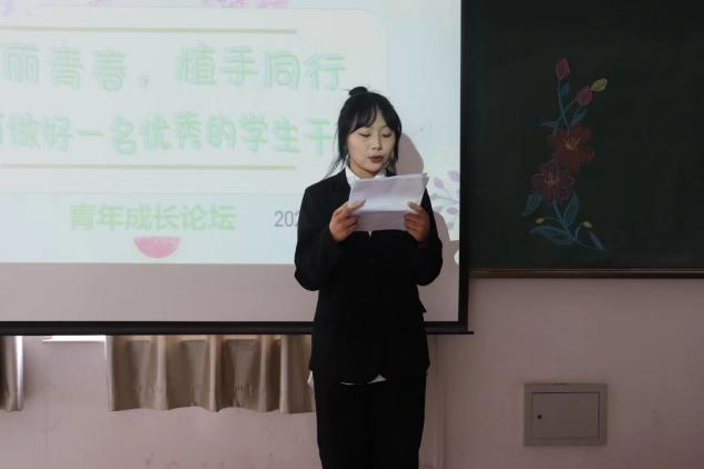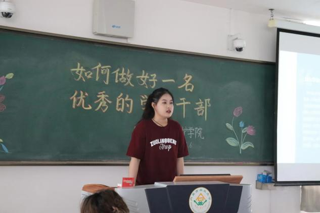 卢文婷同学则通过自身的工作经验,指出做任何事都是始于初心,成于坚守,教导大家做任何事都要有始有终,不半途而废。通过自己在工作中遇到的问题,讲述了心路历程,提醒大家作为学生干部要摆正自己的心态,以良好的精神面貌为师生服务。