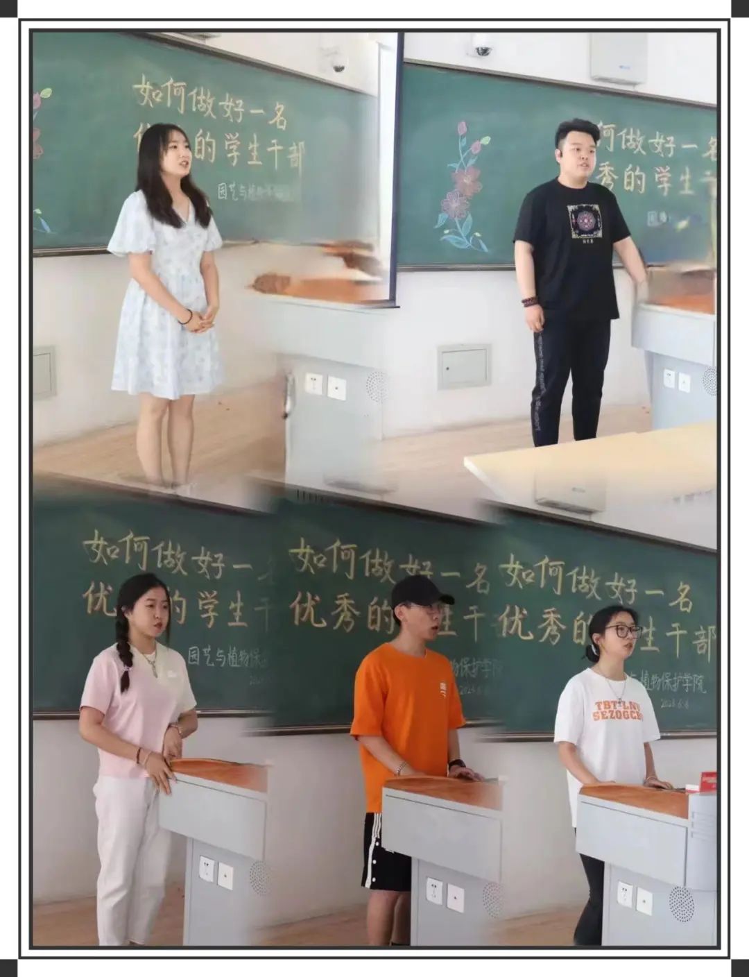 何肖石同学通过什么是学生干部、如何做好学生干部、在工作中的感悟与大家分享。他认为作为一名学生干部要在学习和工作做好表率作用,在工作中,加强技能知识的学习,提升工作效率,同时也要学会学习,平衡好工作与学习之间的关系,只要努力付出就会收获鲜花与掌声。