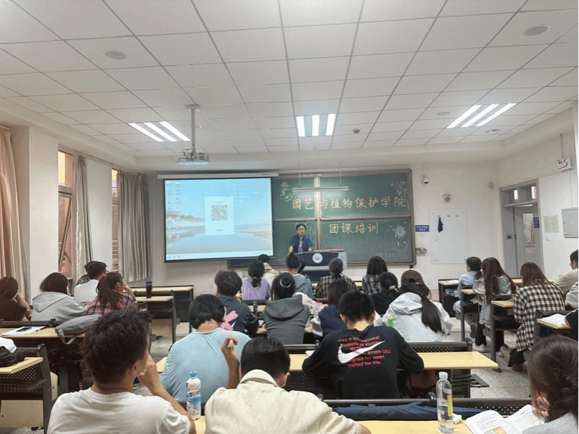 在南教216教室开展团课培训,校团委书记邹爱婕担任本次团课的主讲人。