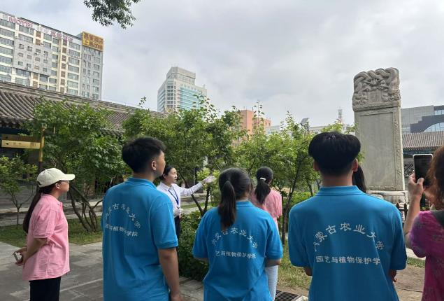 绥远城将军府,作为清代军府建筑的代表,占地面积约1.5万余平方米,红墙环绕,回廊幽深,院内古树葱茏,景色怡人。实践队成员们认真聆听了讲解员的介绍,详细了解了将军府的历史沿革和建筑布局。