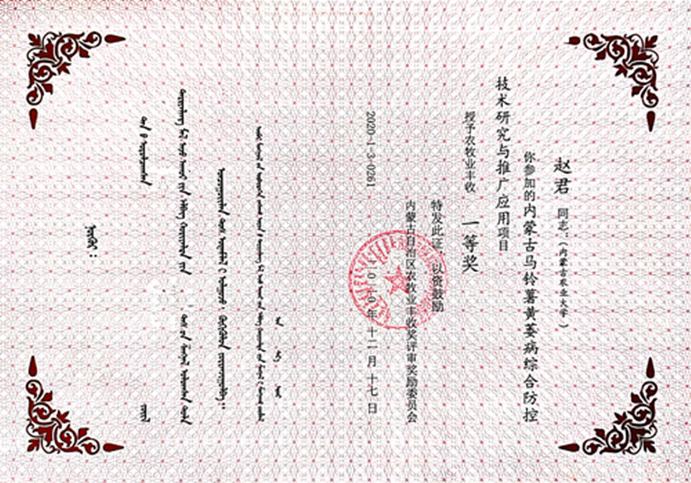 内蒙古寒旱区作物保护工程技术中心自成立至今,承担完成各类科技课题30余项,总经费1100余万元。研究团队中有2人入选内蒙古321人才;获得国家级和省部级奖项8项;申报发明专利12项,获批8项;制定地方标准8项。