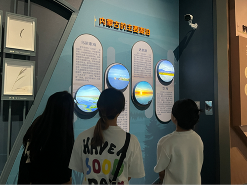 师生们漫步在不同展厅之间,展开了一幅多维度的内蒙古发展画卷。展厅内,既有呼伦贝尔草原、大兴安岭林海的壮美风光模型,也有蒙古族刺绣、鄂温克族桦皮制作等非物质文化遗产技艺展示;既有牧区现代化建设的实景沙盘,也有新能源、生态产业等高质量发展成果的数据呈现。师生们在蒙古族银器前驻足欣赏传统工艺的精巧,在“乡村振兴示范村”案例前讨论发展思路,在“生态保护成果展”前感慨草原生态的变迁,全方位感受到内蒙古在生态保护、文化传承、经济发展等领域的丰硕成果,以及各民族在交往交流交融中形成的“你中有我、我中有你”的浓厚氛围。