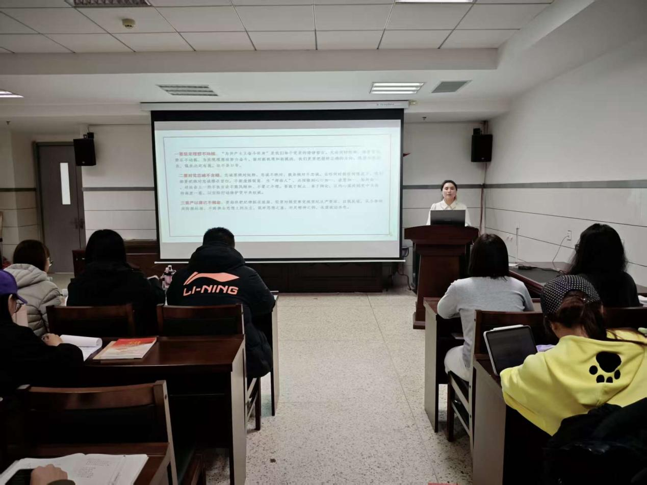 为进一步对照现实、找准差距,郝老师还介绍了陆祥福、黄文亮、纪石、樊礼爱等优秀党员的事迹,鼓励大家以榜样为镜,反思自身在理想信念、担当作为方面的不足,明确努力方向。围绕践行信仰的要求,郝老师提出:要坚定理想不动摇,为实现共产主义奋斗终身;要对党忠诚不含糊,做到心口如一、表里一致,自觉维护党中央权威;要严于律己不懈怠,勤掸思想尘、补足精神钙,永葆共产党员的政治本色。