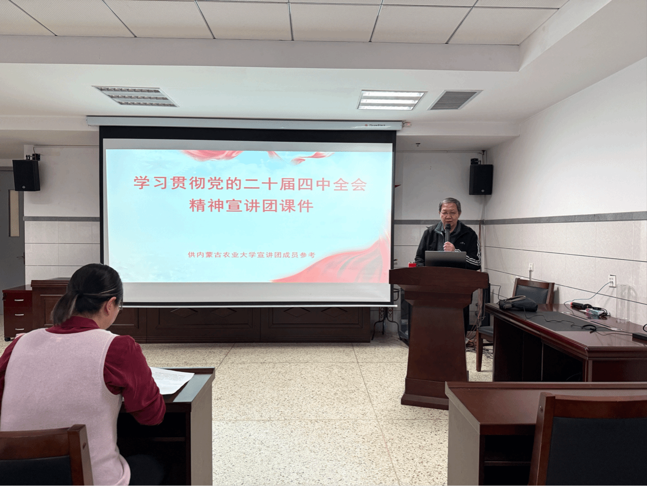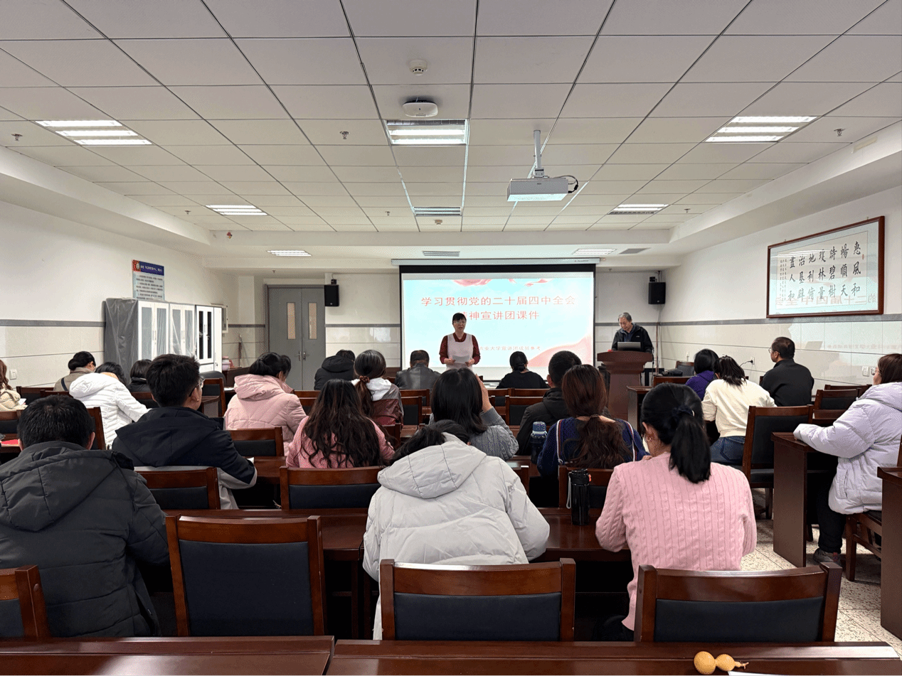特邀马克思主义学院布和老师担任主讲人,于2025年12月18日在生科楼419室为全体教工进行“学习贯彻党的二十届四中全会精神”专题培训。会议由学院党委书记彭静主持,全体教工参会。