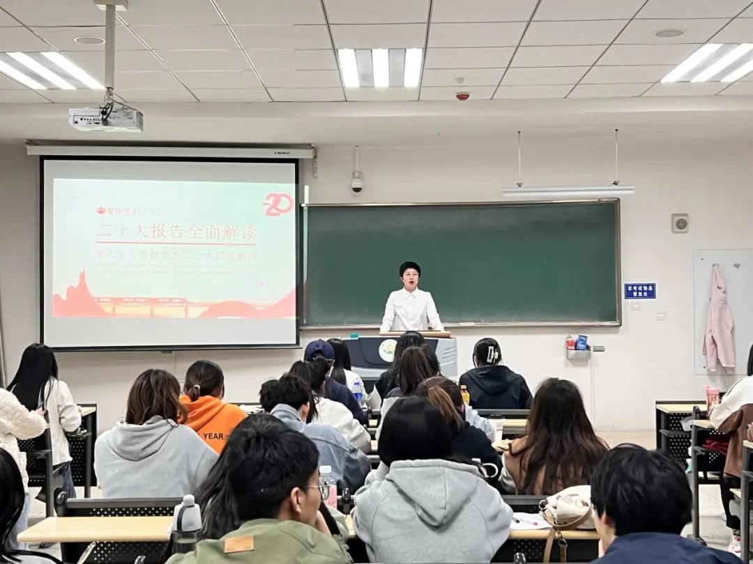 组织员尤丽老师担任主讲人,为大家全面解读二十大报告,深入学习贯彻党的二十大报告精神。