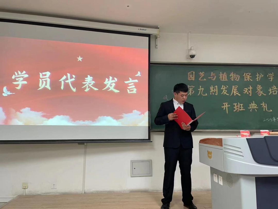 典礼第一项由本期培训班学员代表王一鸣、李唯一同学发言。他们表示,要真正做到组织上和思想上入党,明确入党动机,服务他人,为他人带来正能量。同时不忘初心跟党走,作为新一代入党发展对象,我们要清楚明白自身的责任。要在学习、社会工作、生活等各方面都起到先进模范作用,带动同学们共同营造优良的学习氛围。