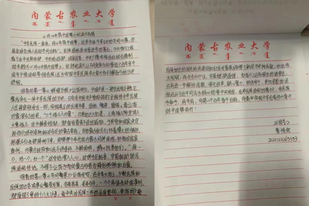 第九期发展对象学员在东主410教室集体观看由中共中央宣传部、中共中央统战部、国家民族事务委员会、中央广播电视总台联合摄制的四集政论专题片《同心共筑中国梦》