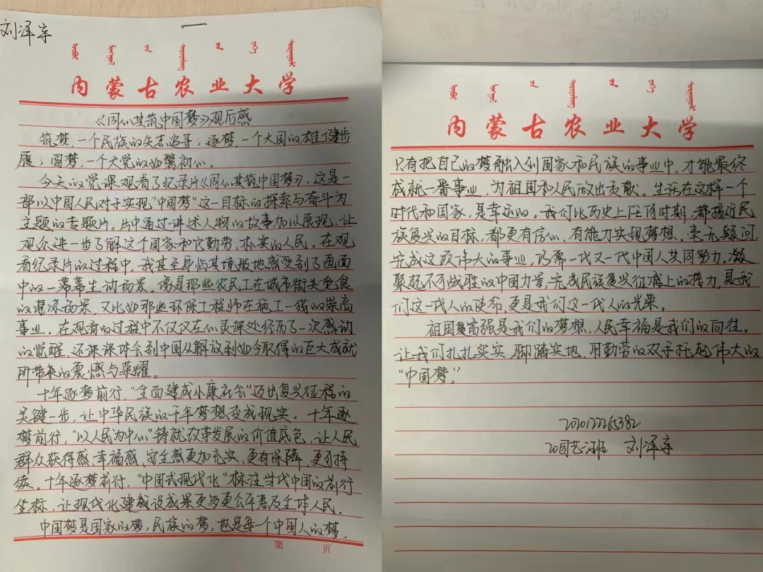 《同心共筑中国梦》是一部主题鲜明的宣传片,又是一部极为成功的教育片,一个个鲜活的案例都在向人们诉说着一个普通的道理:国家好、民族好、个人才会好。建设国家是每一位中华儿女的神圣职责,民族富强是每一位中华儿女的崇高使命。总书记在影片最后强调的“全面建成小康社会,一个民族都不能少”让各位同学热泪盈眶,倍感温暖,更加坚定了一心跟党走,共建美好家园,共创美好未来的决心和为实现中华民族伟大复兴而奋斗的信念。