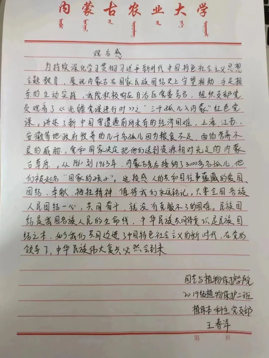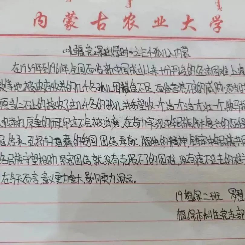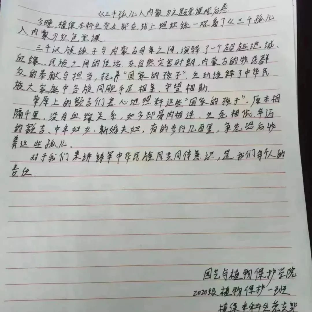 本科生党支部组织支部成员线上观看”三千孤儿入内蒙” 红色党课,党课从《国家的孩子》这本书开始,讲述了上世纪六十年代,三千多个国家的孩子与草原母亲的一段感天动地的传奇故事。演绎了一段跨越地域,血缘与民族的人间佳话,成为了民族团结进步互助的生动见证。