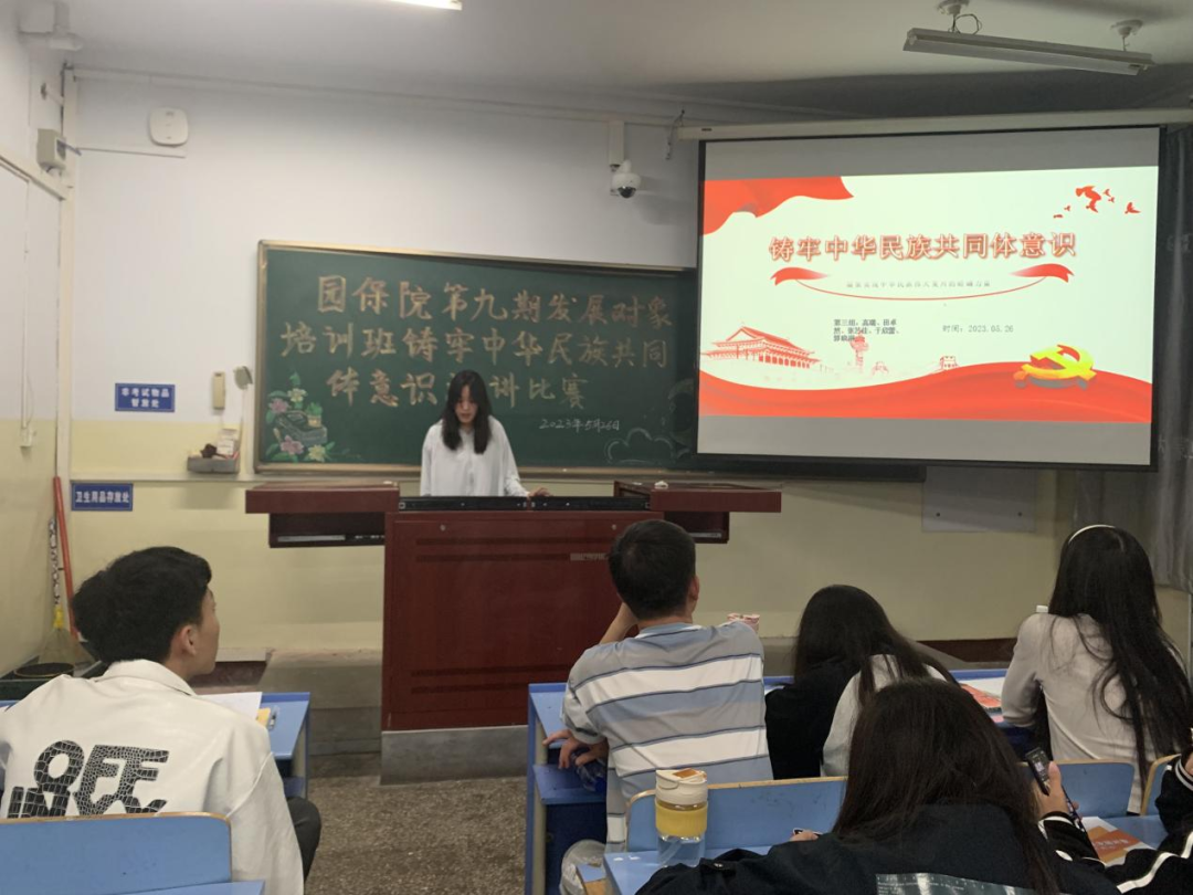 党员服务站于东主212举办“铸牢中华民族共同体意识”主题演讲比赛,第九期发展对象学员参加,党员何肖石、王春洋、李嘉诚、张秉印、宋芳菲、张亚茹出席并担任评委。