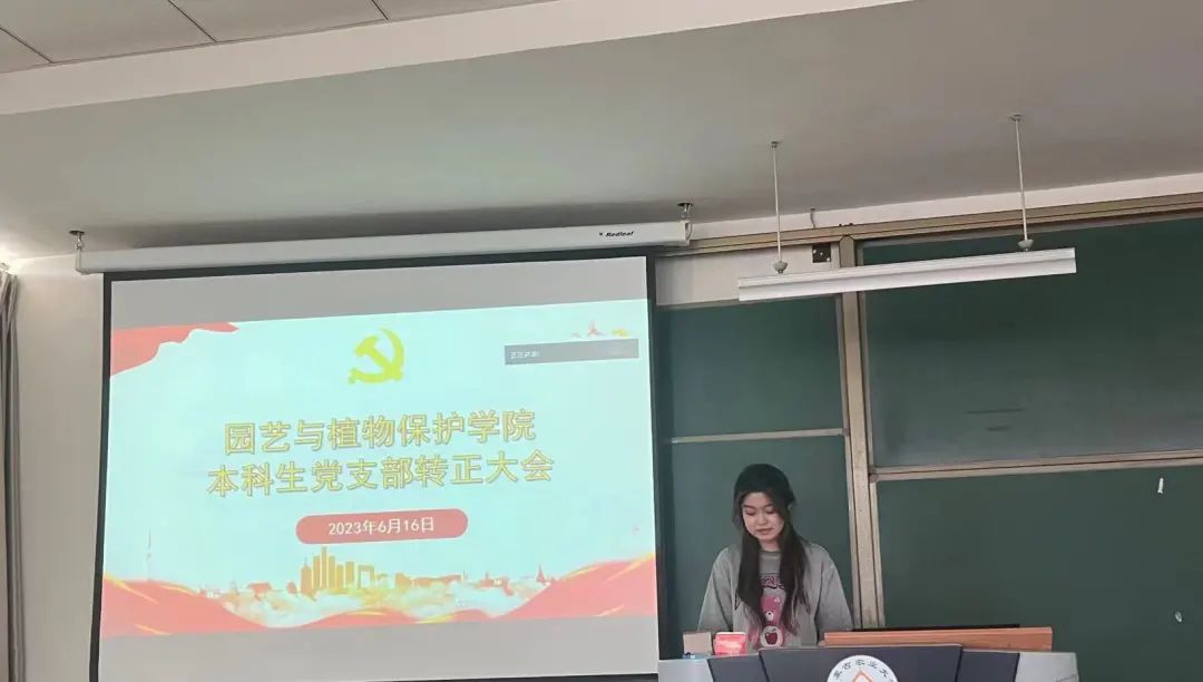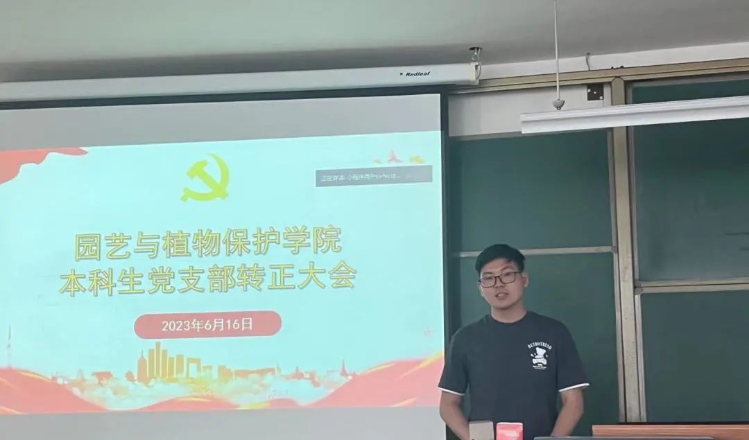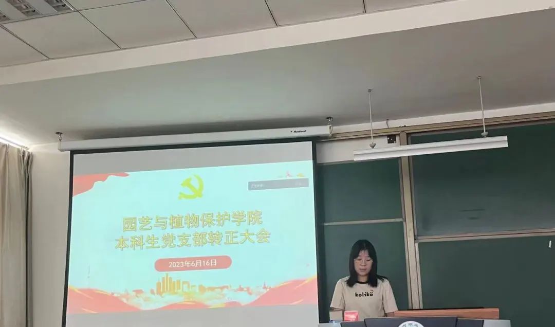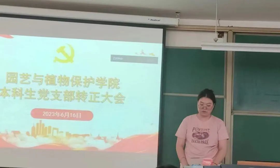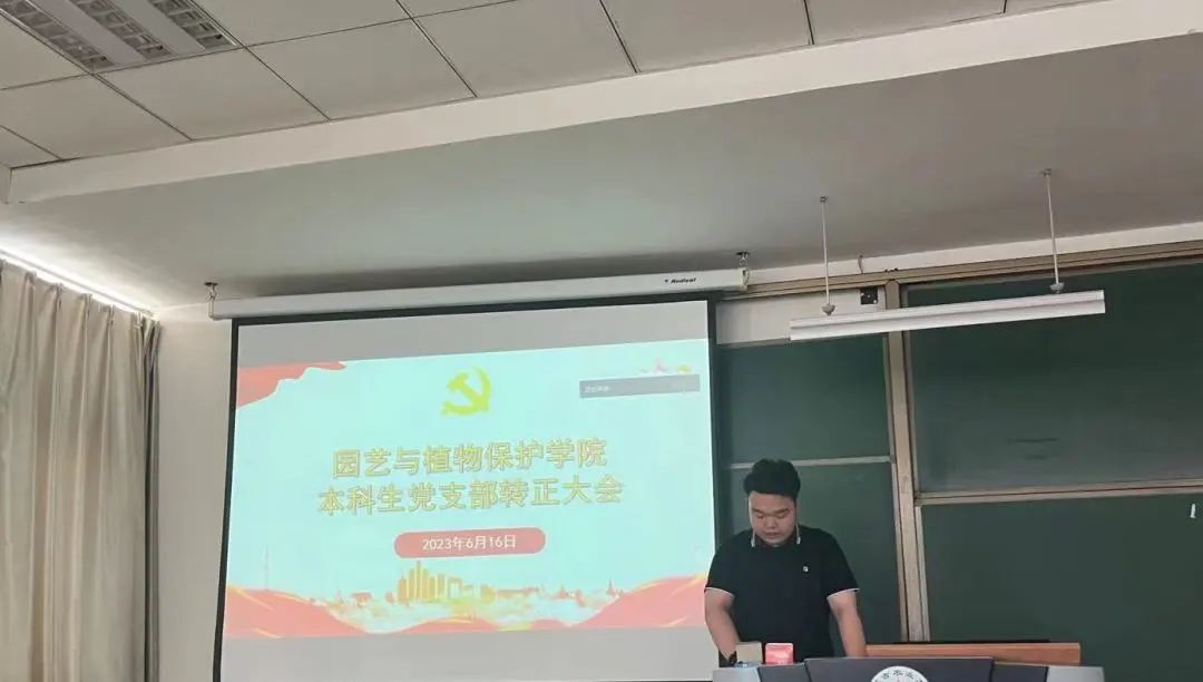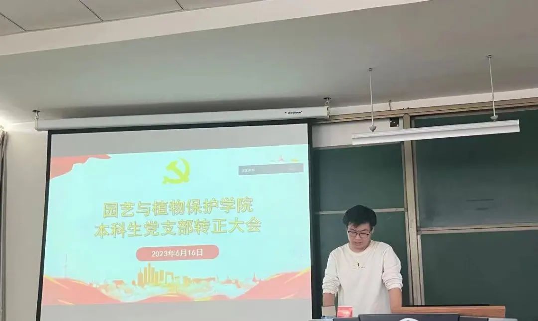 园艺本科生党支部于南教414教室召开支部大会,讨论战金龙、黄国强等8名本科生中共预备党员转正事宜。会议由支部书记郝凤英主持,支部全体党员参加。