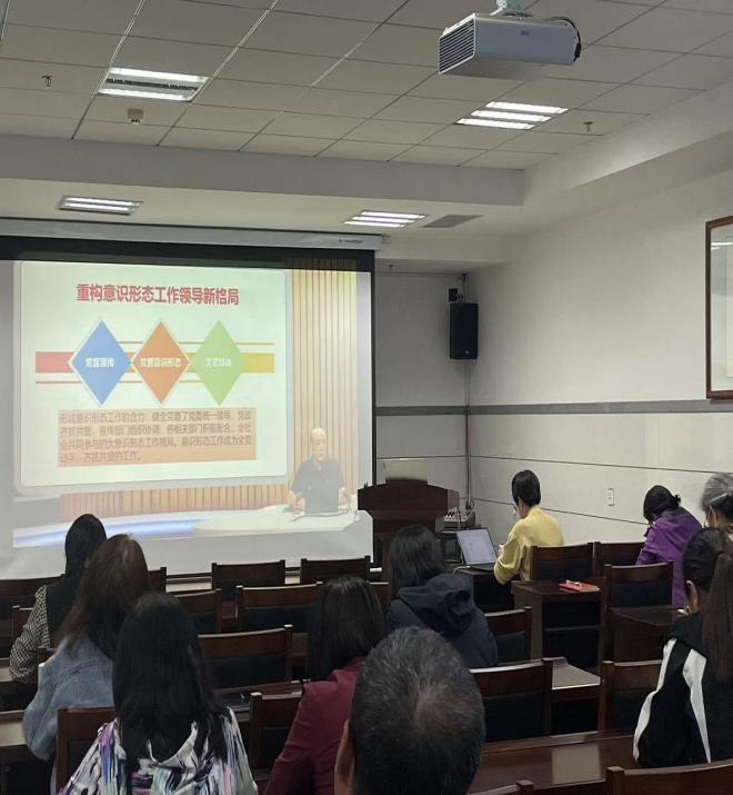 教工在生科楼419参加学习领会习近平总书记关于意识形态工作重要论述培训会。