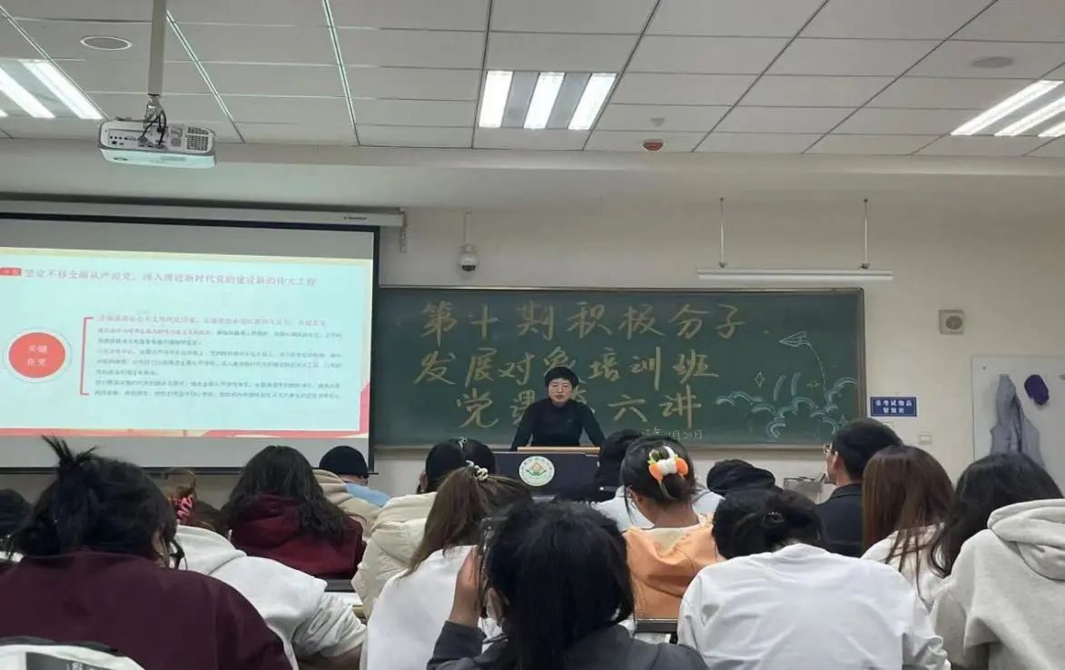 第十期积极分子、发展对象学员在南教203学习党课第六讲,本次党课的主题为“深入学习贯彻党的二十大报告精神”,由酷爱成人网