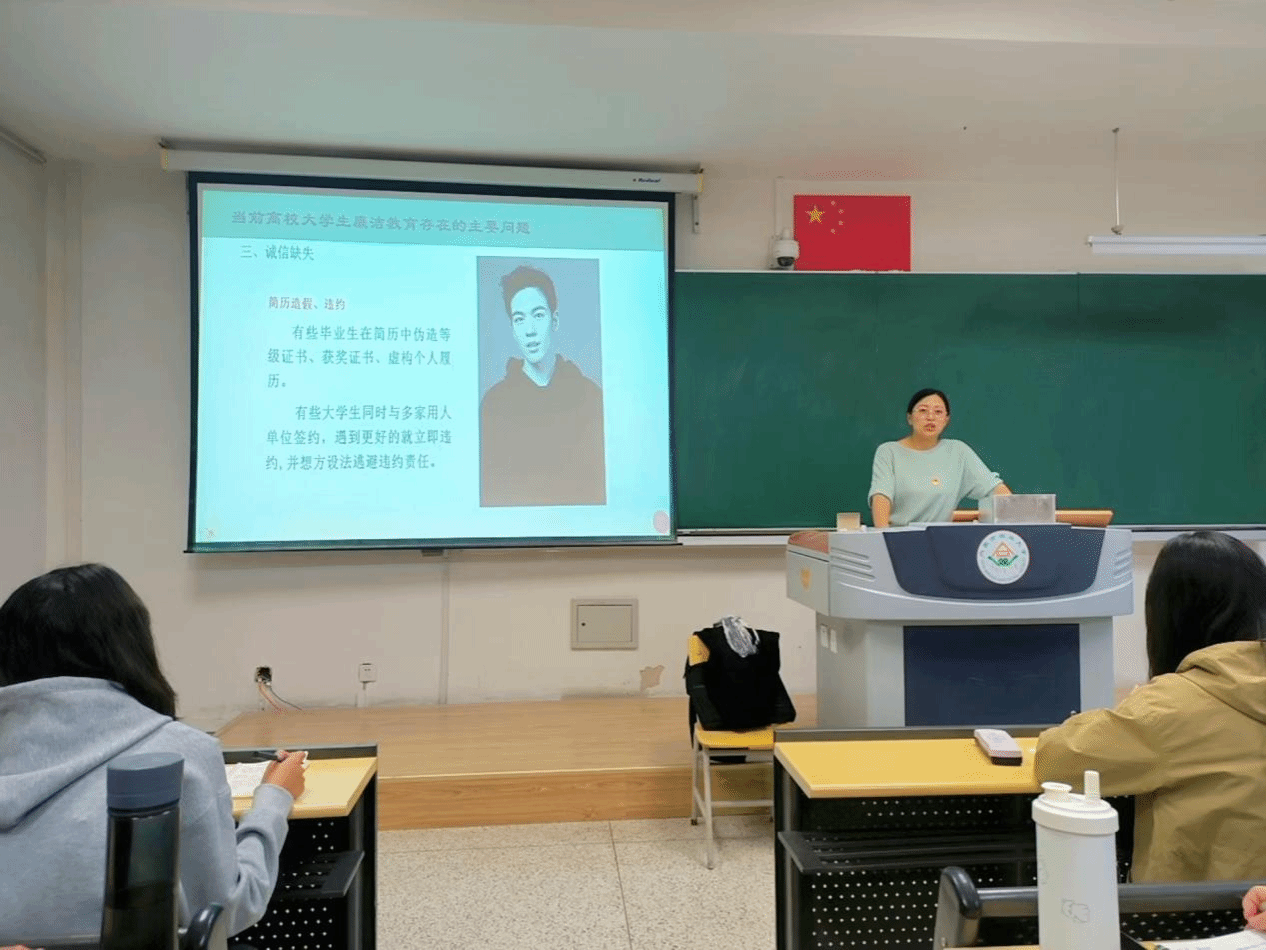 课程中,吕老师围绕“大学生廉洁教育的重要意义”、“大学生中的不廉洁现象”、“廉洁与纪律要求”以及“扣好廉洁从学、廉洁从业的‘一粒扣子’”等四个方面展开深入讲解。通过生动的讲解和丰富的案例,吕老师让同学们深刻理解了廉洁自律不仅是个人品德的体现,更是党和人民事业兴旺发达的重要保证。此外,吕老师还通过播放视频《快板说纪》,幽默风趣地展示了反腐败的重要性,使同学们在轻松愉快的氛围中接受了廉洁教育。