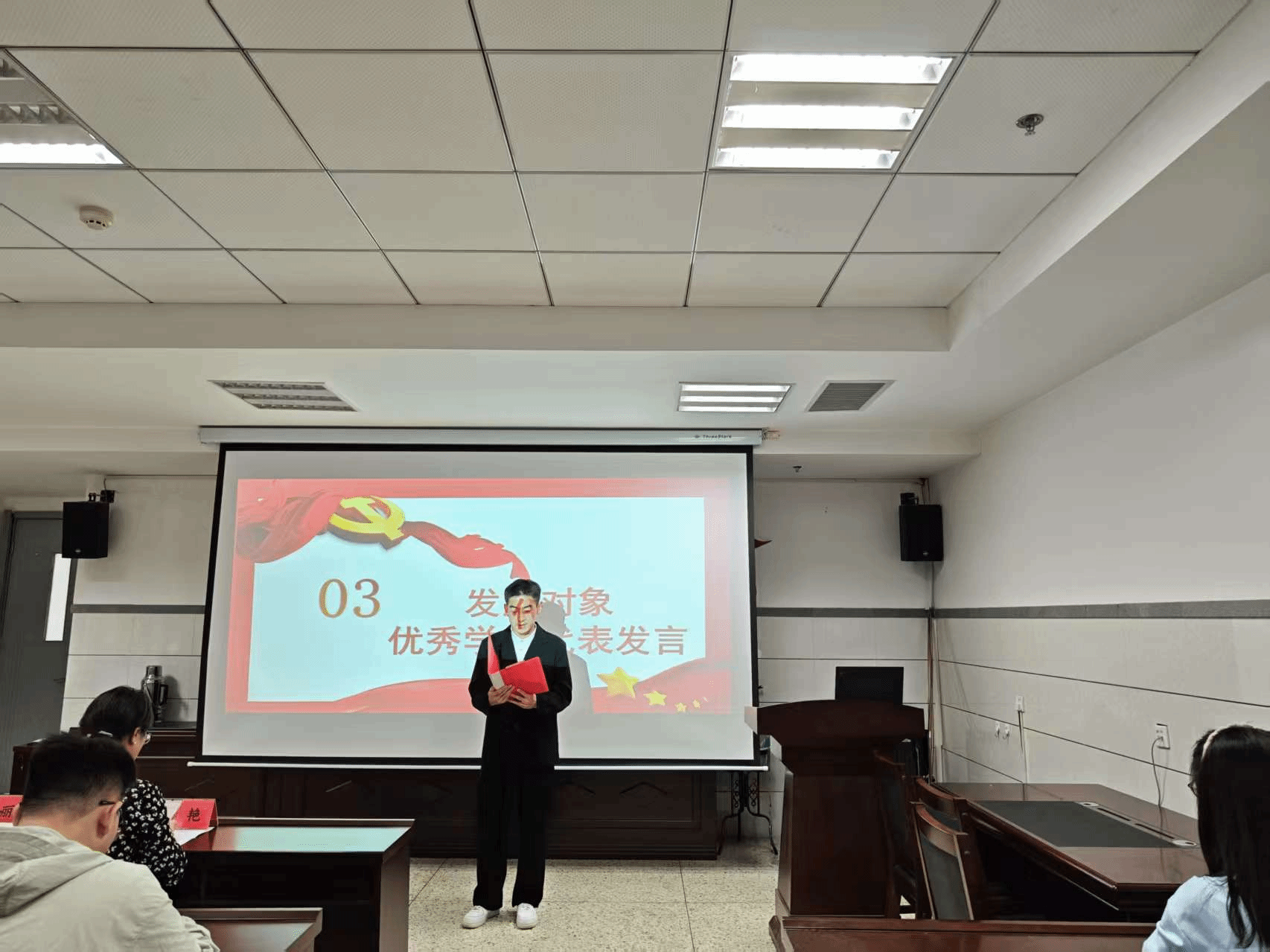 发展对象优秀学员代表冯镕基上台发言,他说道:“结业不是终点,而是向党组织靠拢的新起点。我将继续永葆赤子之心,以党的创新理论武装头脑;永怀进取之志,以实干精神争创一流业绩;严守纪律底线,用实际行动接受组织考验。”他表示将以“功成不必在我,功成必定有我”的坚定信念,不断提高自己的思想政治觉悟,为党的事业贡献自己的力量。