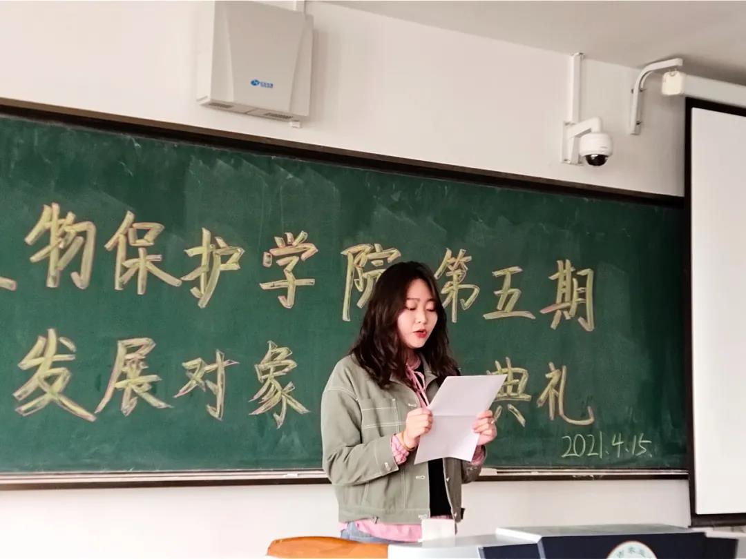 第二项,发展对象培训班的学员代表邢彩玉同学发言。邢彩玉同学在发言中讲到:无论在组织上是否入党,都要做到在思想上真正入党,始终保持共产党员的光荣本色,也希望同学们在今后的学习生活中能够更加努力,力争早日加入中国共产党。