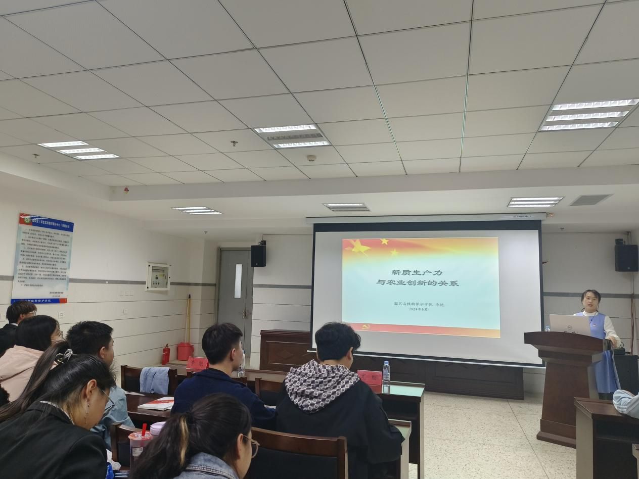 在生科楼419举办第十一期入党积极分子、发展对象党课第一讲。党课第一讲主题为《新质生产力与农业创新的关系》,由党委副书记李艳担任主讲。