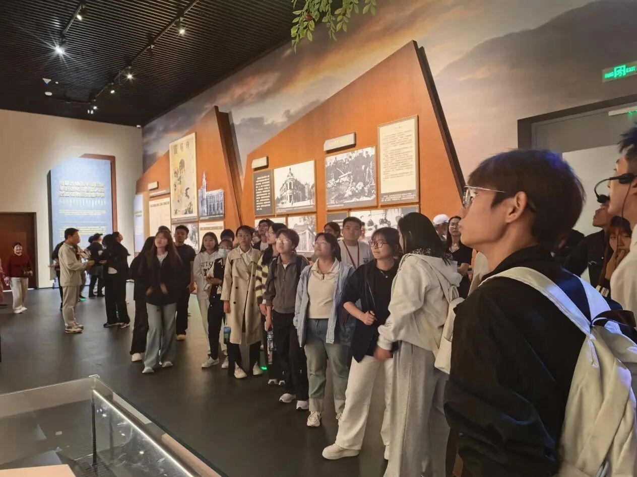 “解放之路”展厅展览面积近千平方米,展线长达数百米 ,以1840年鸦片战争为起点,至1949年新中国成立收尾,系统呈现了内蒙古地区波澜壮阔的革命岁月。泛黄的报纸、进步刊物以及早期革命者的手稿等文物,诉说着近代以来内蒙古人民在列强侵略与封建压迫下的觉醒与抗争,展现了仁人志士探索救亡图存道路的艰辛。展厅通过场景复原、重现了内蒙古各族儿女在抗日战争中浴血奋战的壮烈场景。逼真的战斗场景模型、锈迹斑斑的武器、战士们的家书等展品,让同学们仿佛置身于硝烟弥漫的战场,深刻感受到先辈们为民族独立不惜抛头颅、洒热血的坚定意志,这样沉浸式的观展体验让人深受触动。一位同学感慨道:“以前对内蒙古的解放历史了解并不深入,这次通过这些真实的文物和生动的场景,我仿佛触摸到了那段热血沸腾的历史,深刻体会到今天的和平与繁荣来之不易,作为新时代青年,我们更应铭记历史,努力奋斗。”