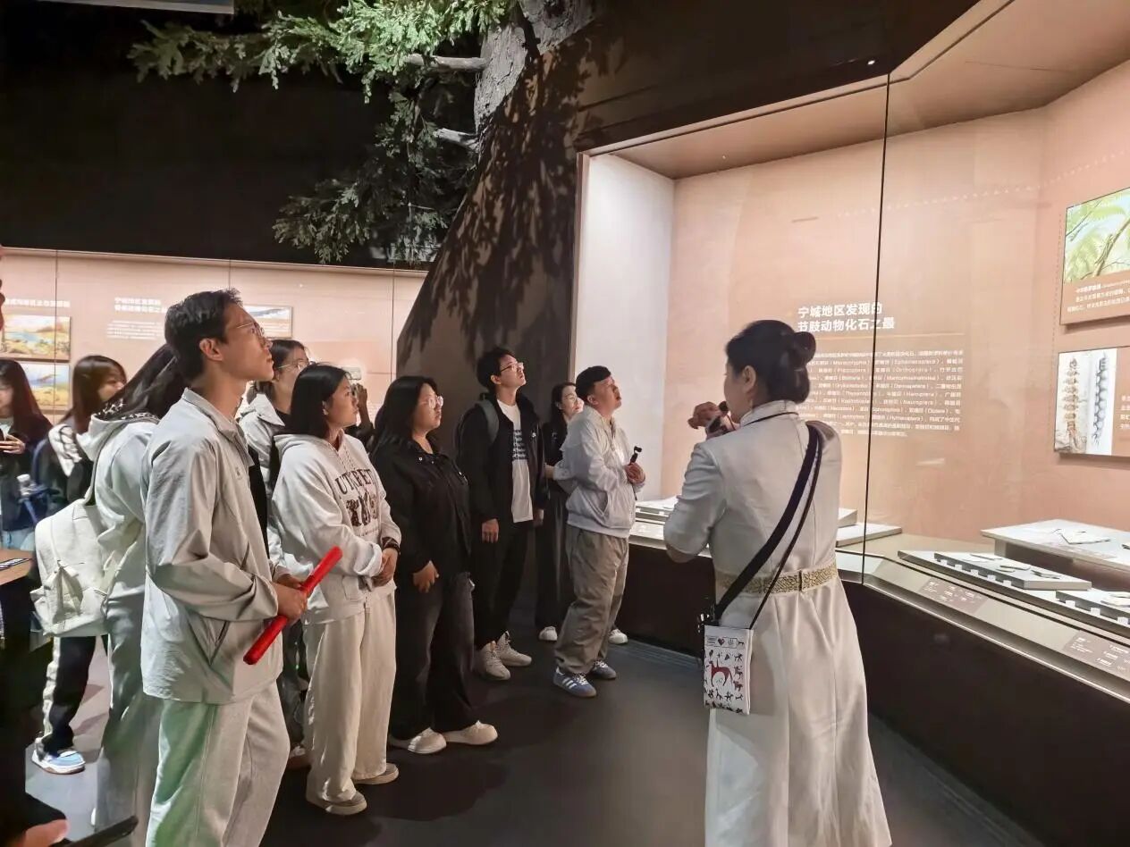主题活动中大家参观了“远古世界”、“解放之路”、“文明遗迹”三大展厅。其中,远古世界展厅通过原始生命的遗迹、形态各异的恐龙化石、种类繁多的哺乳动物化石,系统地展示了内蒙古地区远古生物的演化轨迹。同学们可以看到元古代的叠层石,中生代以恐龙为主的爬行动物化石,新生代的哺乳动物及古人类化石,这些化石藏品大都发现、发掘于内蒙古地区,具有明显的地域特色,让大家深入了解生存繁衍于这片土地上的远古生物类群。