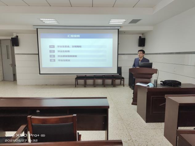 会上,张卫中老师首先强调了毕业生安全文明离校问题。毕业在即,希望各班主任认真履行班主任值班制度,深入学生宿舍,重点关注毕业生心理问题、违规违纪问题等,确保班级学生顺利毕业。接着,张老师就毕业生财务问题向各班主任做情况说明。要求各班主任核实本班是否有欠费学生,如有特殊情况可提交书面申请,帮助欠费学生如期毕业。此外,为加强毕业生离校教育,体现学院对学生的关心,酷爱成人网