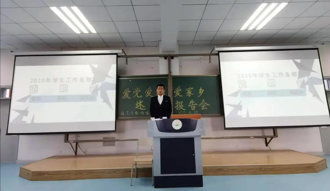 于12月24日中午在新区南教116教室召开学生干部述职报告会。团委老师郝凤英、学办老师尚飞以及全体学生干部参加此次会议。