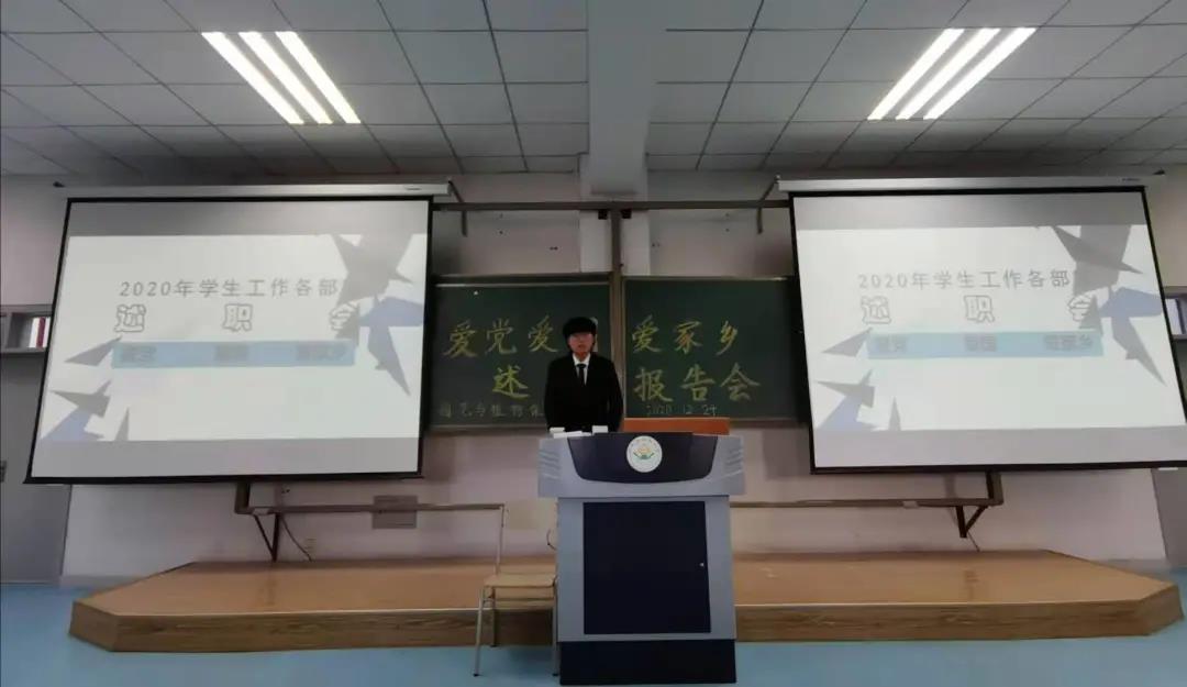 会议伊始,尚老师在讲话中提到,在即将过去的2020年,同学们要总结一年来的收获,衡量自己在工作与学习之间的得失,为自己的新学期做好准备。随后,会上,各部门针对部室工作内容阐述与如何优化工作各抒己见,全面客观地梳理了2020年已经完成的工作、未完成工作和存在问题及措施,对未来的展望三个方面进行了述职汇报,在聆听与汇报中感受部门之间的差异以及各位汇报人的个人风采。最后,郝凤英老师进行总结,郝老师表达了对同学们辛勤付出的感谢,并说到作为学生会成员,应以身作则、严于律己,用自己的行为诠释集体精神四字。