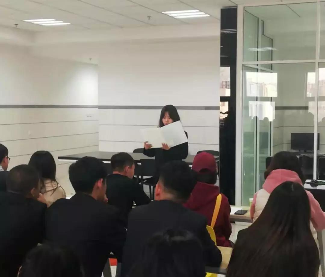 在主持人介绍完本次活动的意义和内容后,各班代表通过10月展开的“不忘初心,牢记使命”的主题团日活动,分享团支部的开展过程、方式以及最终的收获。其中,19级园艺三班班主任孙婧为大家讲述了中国共产党的发展史,以钱学森和袁隆平两位优秀共产党员的故事告诉同学们什么是初心;19级设农一班在班主任孙晓华老师的带领下组织同学们深情朗诵关于“爱祖国、担大任、做新人”的文章,唤醒当代青年体内的红色基因;同学们或通过小卡片让写下自己的初心,等待一年的耕耘;或通过观看红色影片,激发爱国热情。本次竞标会的召开,班级代表深情并茂的讲述着自己班级的活动开展情况,团干部间形成一个良好的互动交流平台。