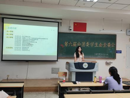 在南教218教室举办第六届分团委学生会全委会。团委老师郝凤英,第五届分团委学生会主席团成员李嘉诚、张煜以及第六届分团委学生会成员参加本次会议,会议由第六届分团委学生会执行主席胡慧成主持。