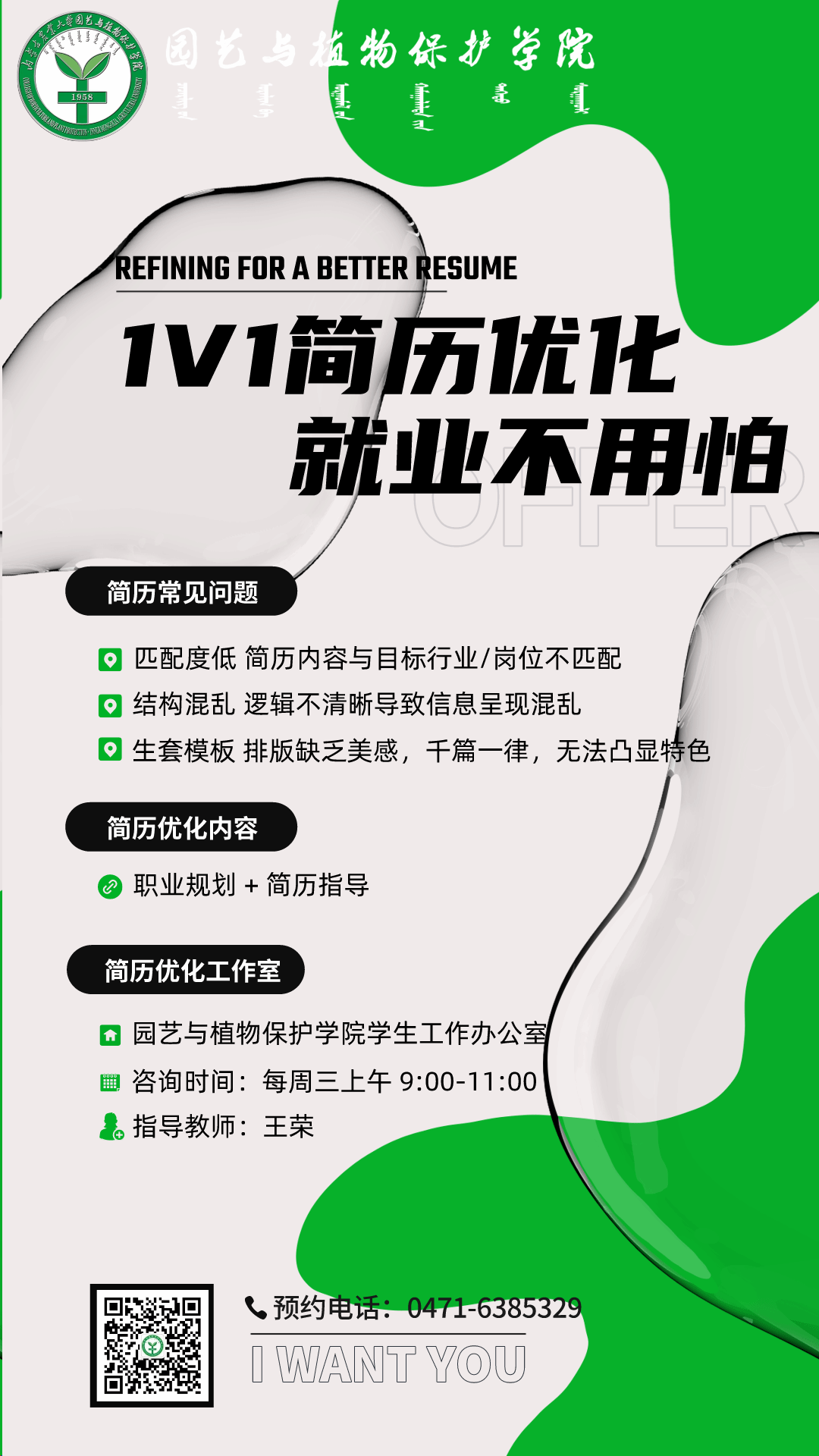 为促进酷爱成人网 2024届毕业生高质量充分就业,特开展针对性的简历优化指导服务,毕业生可根据需要提前电话预约。