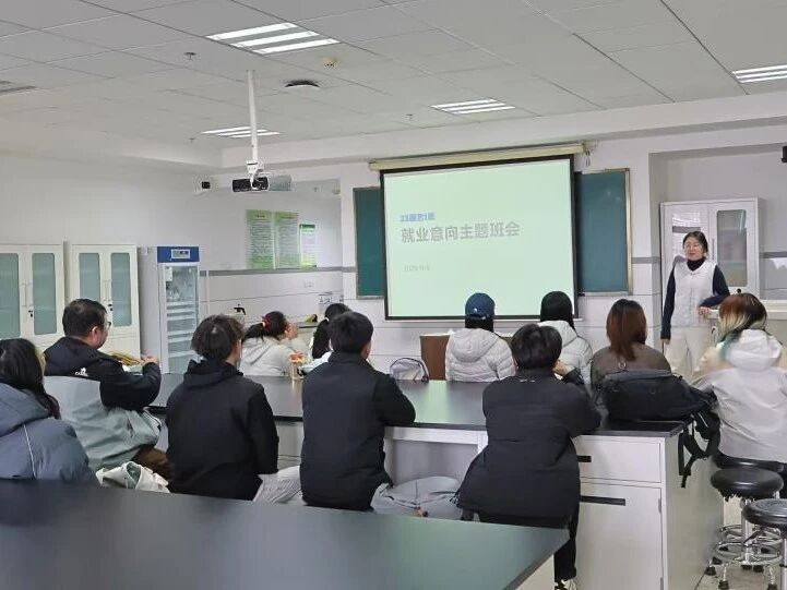 班会前,孙老师向全班同学发放了就业意向调查问卷,围绕就业方向选择、毕业准备情况及就业信息需求等核心问题展开调研。调查结果 显示,半数以上的同学以考研作为目标,约三分之一的同学选择参加公务员或事业单位考试,其余同学则倾向从事兴趣相关职业,或暂未明确就业方向。调查问卷结果同时也反映出,一些同学对未来职业路径存在迷茫,在择业决策、考研考公筹备等具体事项上,存在明显的信息短板与认知盲区。