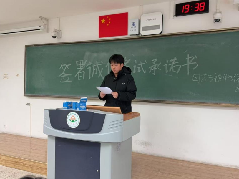 活动现场,学院学风建设中心代表首先宣读了《诚信考试倡议书》,明确考试纪律要求与违规后果,引导学生树立“诚信为本、严谨为学”的应考理念。在签署环节,同学们认真阅读承诺书内容后,郑重签下姓名。一笔一划不仅是规则的遵守,更是对学术道德与个人品格的庄严承诺。在场学生纷纷表示,将以真实成绩检验学习成果,用诚信书写无愧于心的青春答卷。