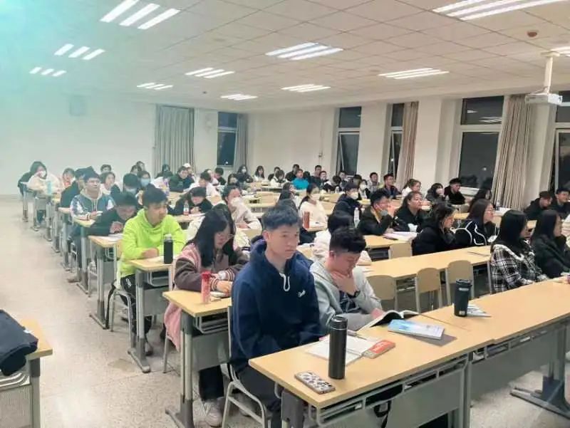 辅导员尚飞老师带领学生会成员进入晚自习教室,进一步开展校规校纪教育活动。
