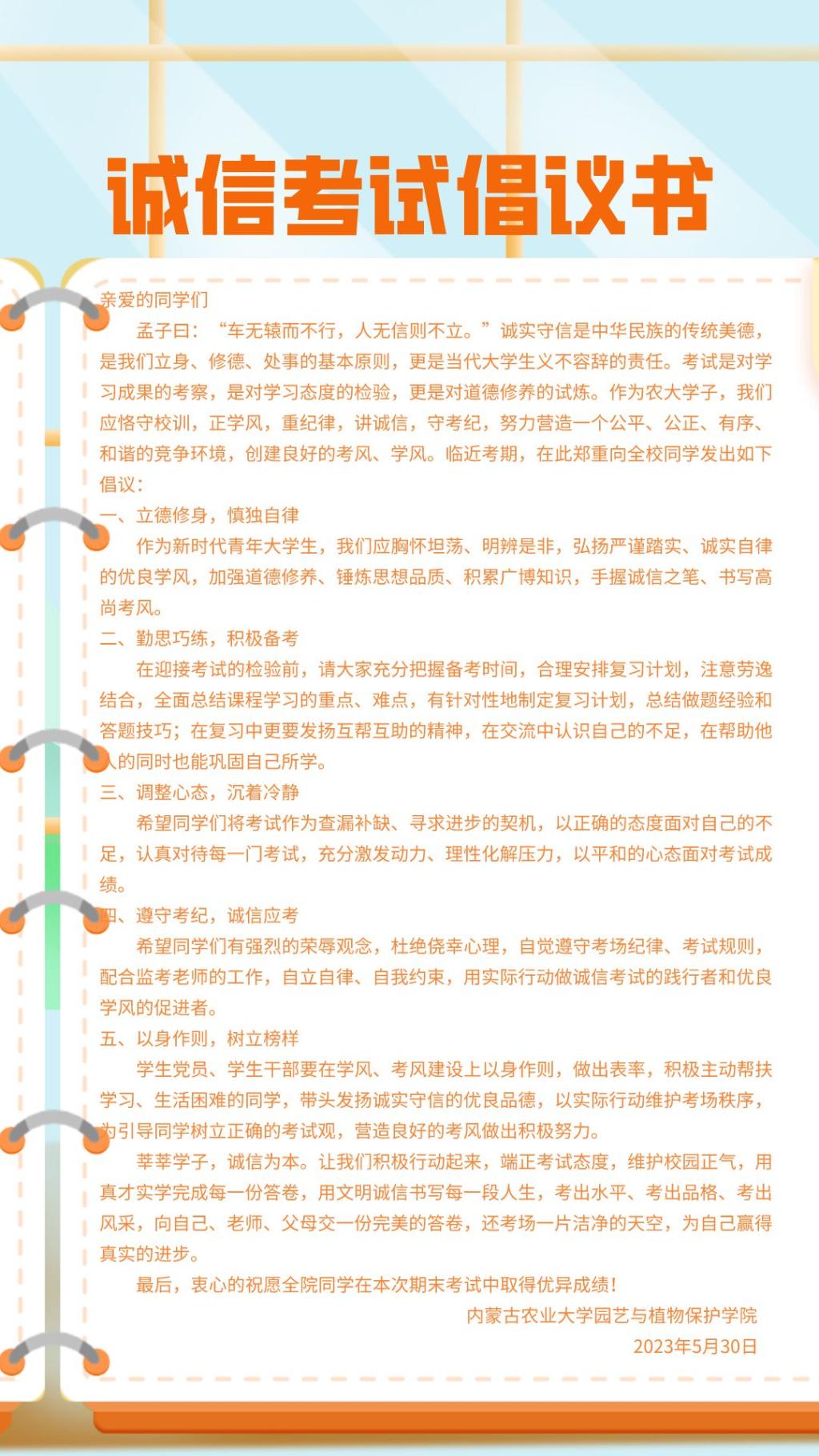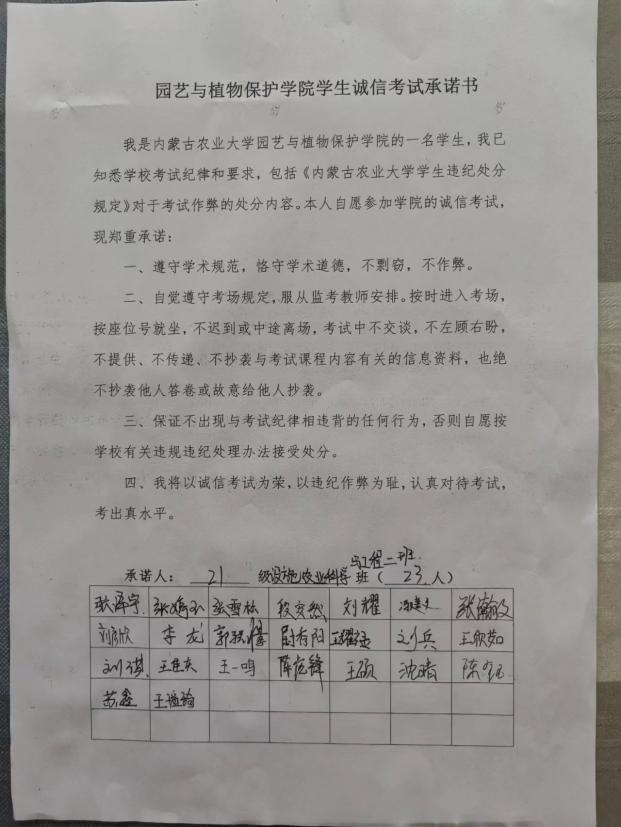 为进一步弘扬和践行诚信的美德,在期末考试到来之际,酷爱成人网 向全院学生发起“诚信考试”倡议,呼吁同学们“守校训,正学风,重纪律,讲诚信,遵考纪”。各班级同学积极签署诚信考试承诺书。