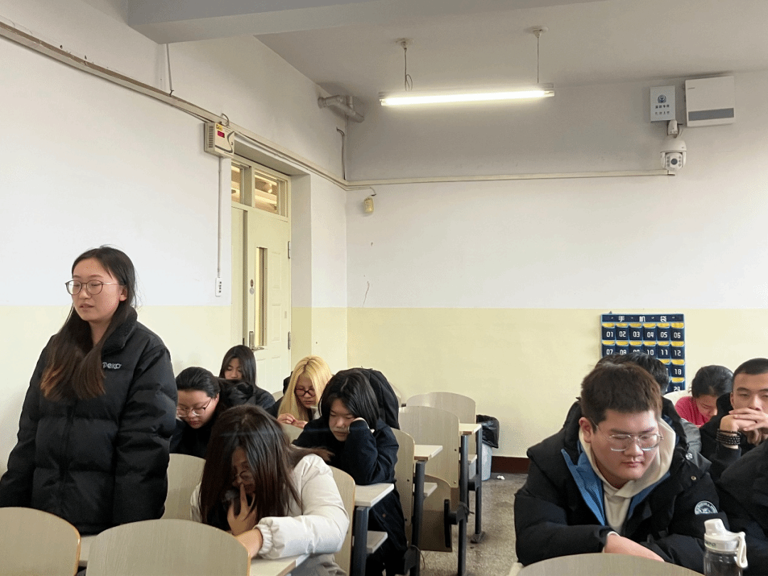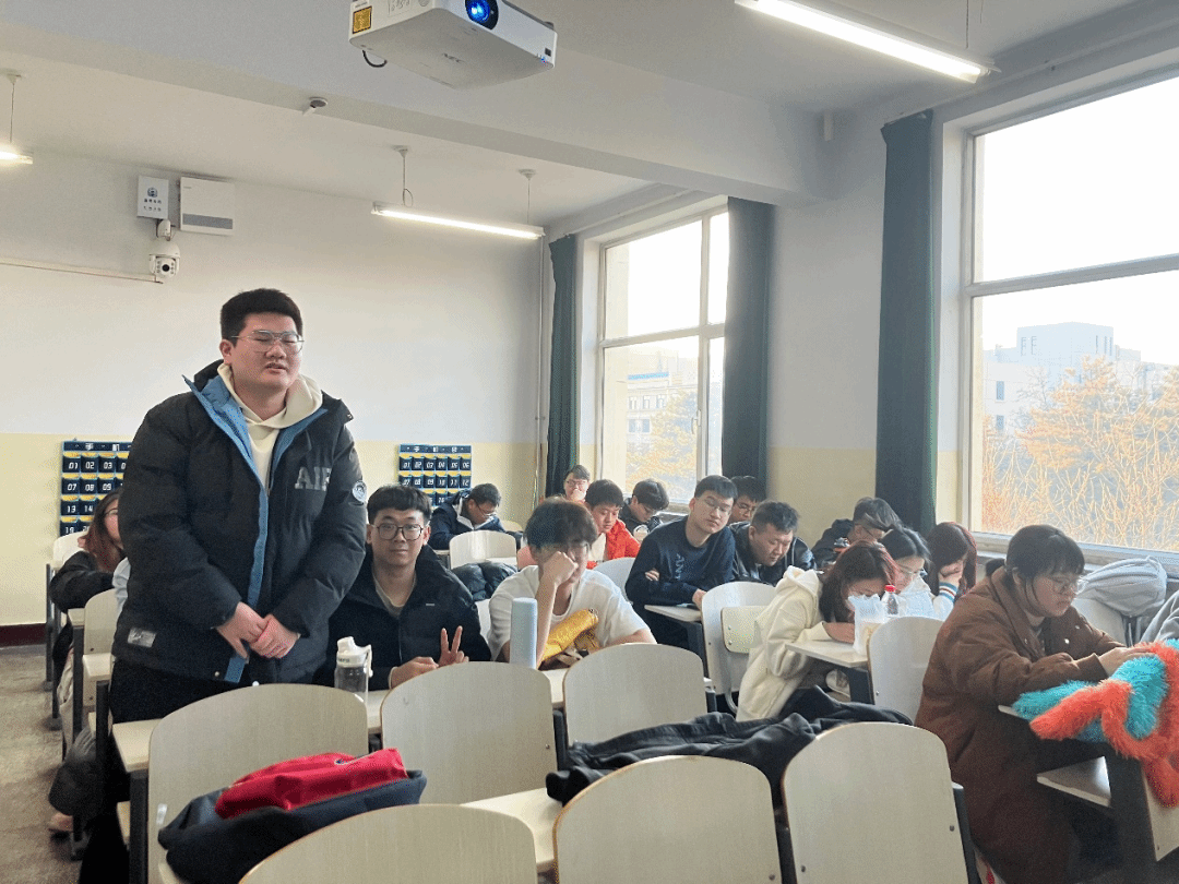 紧接着,同学们从假期生活、人生目标、大学以来的收获等方面分享自己的想法。其中,高玮同学分享了寒假期间做家教时的感受,认识到了当老师的辛苦;季怡同同学分享了自己寒假时去往社区基层,走进儿童之家的经历,鼓励大家积极帮助这些孩子;郭梦同学认为大家要以平和的心态享受备考时带给我们的快感,也要有勇气面对失利时带给我们的成长与经验。