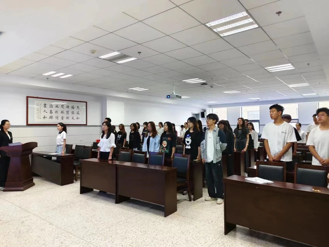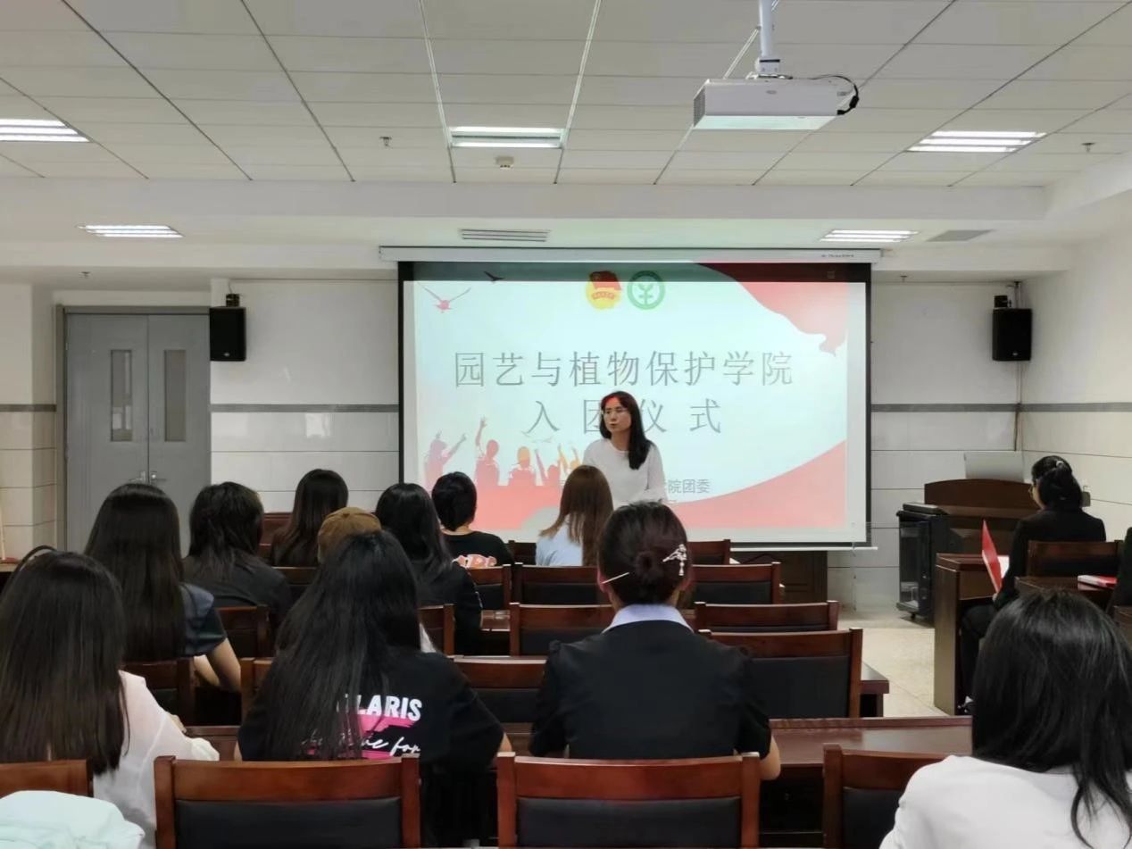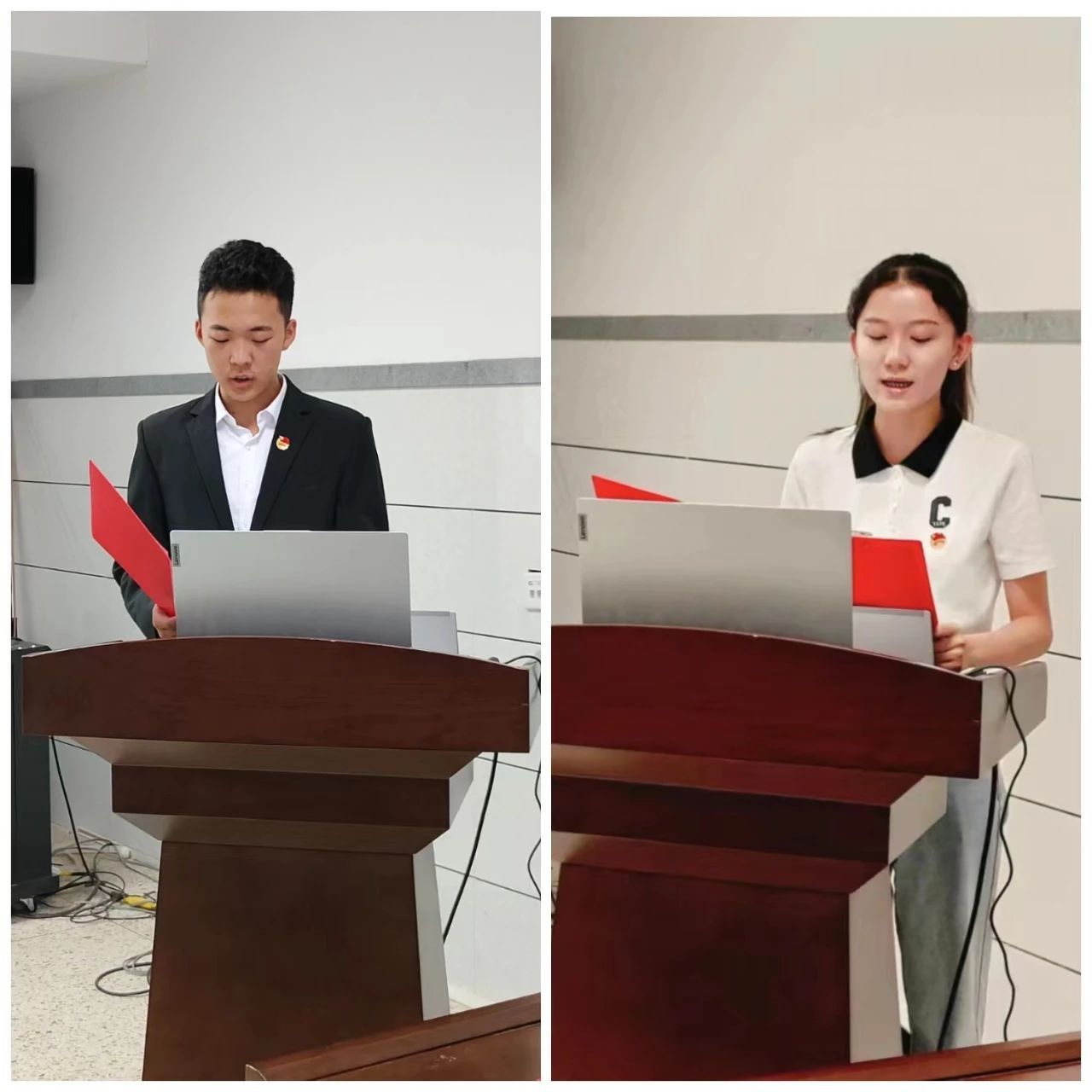 于生科楼419会议室庄严举行新发展团员入团仪式。团委老师郝凤英、团员代表以及新发展团员参加本次入团仪式。组织部王雨佳同学主持会议。
